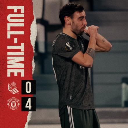 北京時間2月19日(周五)凌晨01點55分,2020-21賽季歐聯(lián)杯32強淘汰賽進行了首回合的一場比賽,在中立場地意大利尤文圖斯球場由皇家社會對陣曼聯(lián)。曼聯(lián)4-0取勝,B-費爾南德斯打入前兩個進球,隨后拉什福德和詹姆斯擴大戰(zhàn)果。兩隊次回合在下周進行?! 申犜跉W戰(zhàn)僅有兩次交鋒在2013-14賽季歐冠小組賽曼聯(lián)主場1-0勝客場0-0平。曼聯(lián)近9次歐戰(zhàn)對陣西班牙球隊3平6負沒贏過。本場原本應(yīng)該是皇家社會主場,但因為疫情改到中立場地意大利。曼聯(lián)首發(fā)和上一場聯(lián)賽相比輪換5人,卡瓦尼、德赫亞、馬夏爾等人休息,B-費爾南德斯繼續(xù)首發(fā)?;始疑鐣装l(fā)的賈努扎伊曾在曼聯(lián)效力,另外大衛(wèi)-席爾瓦、蒙雷亞爾和梅里諾曾在英超踢球?! 〉?分鐘,皇家社會反擊,伊薩克傳球,賈努扎伊偏右18碼處左腳射門偏出底線。迪恩-亨德森開出球門球,拉什福德擠倒后衛(wèi)后拿球單刀,但他射門直奔出擊的門將。第3分鐘,皇家社會反擊,賈努扎伊直塞,伊薩克插上準單刀,他右肋12碼處射門,迪恩-亨德森撲出底線。第8分鐘,萬比薩卡背后鏟倒蒙雷亞爾領(lǐng)到黃牌?! 〉?5分鐘,賈努扎伊開出左側(cè)角球,祖貝迪亞10碼處半凌空抽射打偏。第16分鐘,B-費爾南德斯傳球,麥克托米奈帶球突入禁區(qū)右肋6碼處射門,雷米羅撲出。第19分鐘,曼聯(lián)反擊2打2,B-費爾南德斯禁區(qū)左肋橫傳,拉什福德直接面對門將12碼處射門又直接打在門將身上,B-費爾南德斯頭球補射被后衛(wèi)補門擋出。 第27分鐘,拉什福德中場左路挑傳禁區(qū),B-費爾南德斯快速插上,出擊的門將和回追的后衛(wèi)相撞把球漏掉,B-費爾南德斯拿球射空門得分,曼聯(lián)1-0領(lǐng)先。第38分鐘,賈努扎伊開出左側(cè)角球,梅里諾前點拿球后傳球,中路祖貝迪亞12碼處射門被擋出。上半場結(jié)束曼聯(lián)1-0領(lǐng)先?! ∠掳雸鲩_始,第47分鐘,諾曼德超遠距離射門被迪恩-亨德森撲到。第53分鐘,蒙雷亞爾左路傳中,大衛(wèi)-席爾瓦12碼處搶點射門沒有踢正部位打偏。第55分鐘,拉什福德突破分球,巴伊遠射打飛。第57分鐘,曼聯(lián)反擊,拉什福德傳球,詹姆斯一墊,B-費爾南德斯18碼處右腳射門,球飛入右下角,曼聯(lián)2-0領(lǐng)先?! 〉?1分鐘,曼聯(lián)解圍出角球,奧亞薩瓦爾迎球遠射被擋出。第64分鐘,曼聯(lián)反擊,弗雷德直塞,拉什福德插上單刀12碼處右腳推射,球飛入右下角,曼聯(lián)3-0領(lǐng)先。第67分鐘,拉什福德直塞,格林伍德插上禁區(qū)左肋橫傳,詹姆斯包抄破門,但VAR認為格林伍德越位進球無效。第73分鐘,格林伍德左路突入禁區(qū)左肋10碼處射門打偏。 第80分鐘,曼聯(lián)反擊,B-費爾南德斯妙傳,詹姆斯單刀,他右肋12碼處射門被門將撲出。第88分鐘,諾曼德放倒詹姆斯領(lǐng)到黃牌。第90分鐘,巴伊長傳,詹姆斯右路拿球帶球突入禁區(qū)右肋6碼處小角度射門,球飛入左下角,曼聯(lián)4-0領(lǐng)先。第95分鐘,馬夏爾傳球,馬塔遠射被門將撲到。最終曼聯(lián)4-0取勝。